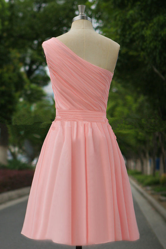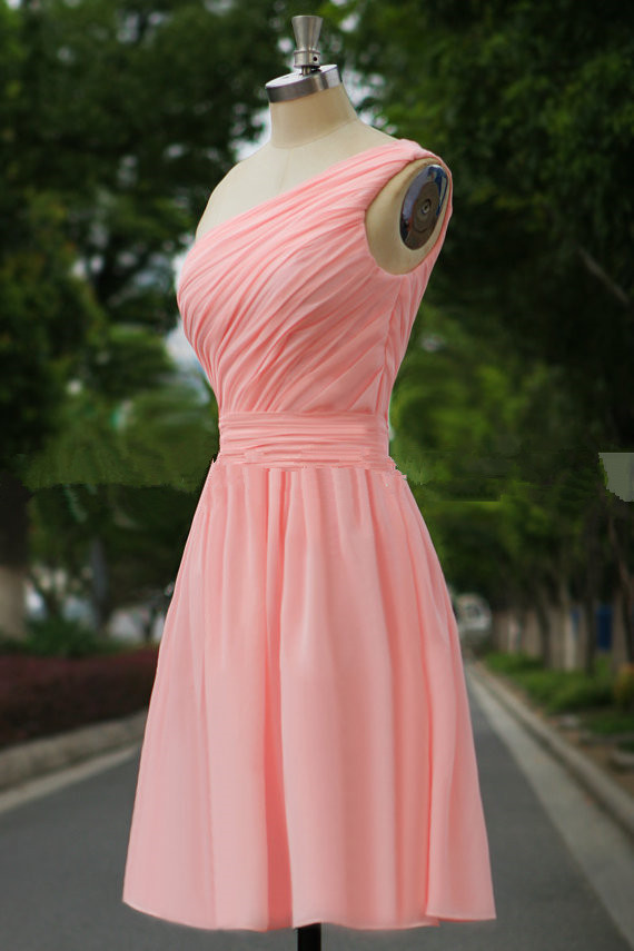 Cute Simple Pink Short One Shoulder Bridesmaid Dresses, Short Bridesmaid Dresses, Pink Bridesmaid Dresses