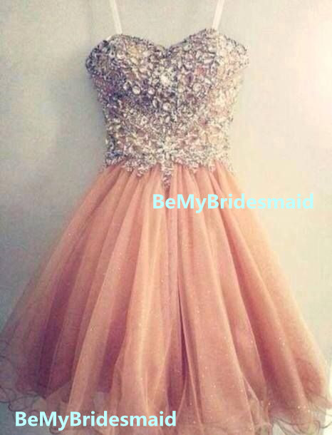 Cute Tulle Spark Light Pink Sweetheart Short Prom Dress 2016, Homecoming Dresses