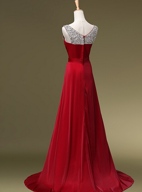 Beautiful Wine Red Long Prom Dress With Beadings, Prom Dresses 2016,Long Formal Dresses 2016