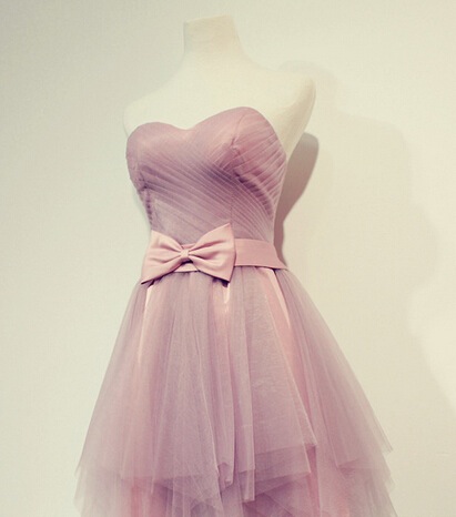 Lovely Tulle Short Sweetheart Prom Dress with Bow, Cute Prom Dresses, Homecoming Dresses
