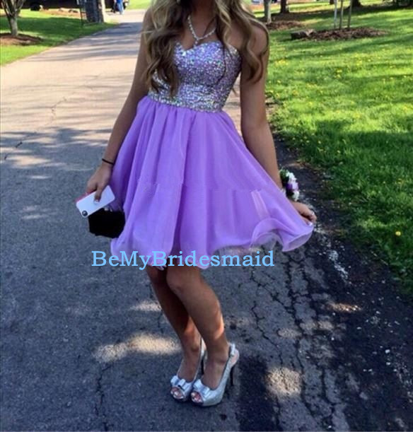 Lovely Short Lavender Chiffon Beaded Sweetheart Prom Dresses, Homecoming Dresses, Lavender Party Dresses