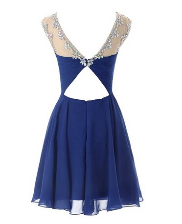 Beautiful Blue Chiffon Beaded Short Prom Dresses, Homecoming Dresses, Party Dresses