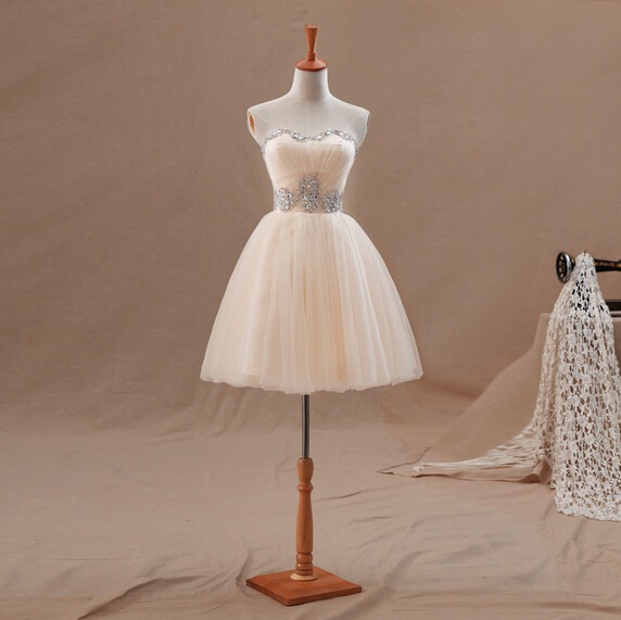 Lovely Champagne Short Tulle Sweetheart Prom Dresses, Homecoming Dresses, Cute Formal Dresses