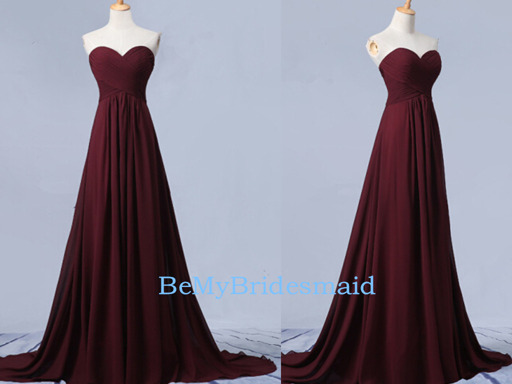 Charming A-line Sweetheart Maroon Long Chiffon Prom Dress 2017, Simple Prom Gowns, Long Prom Dresses