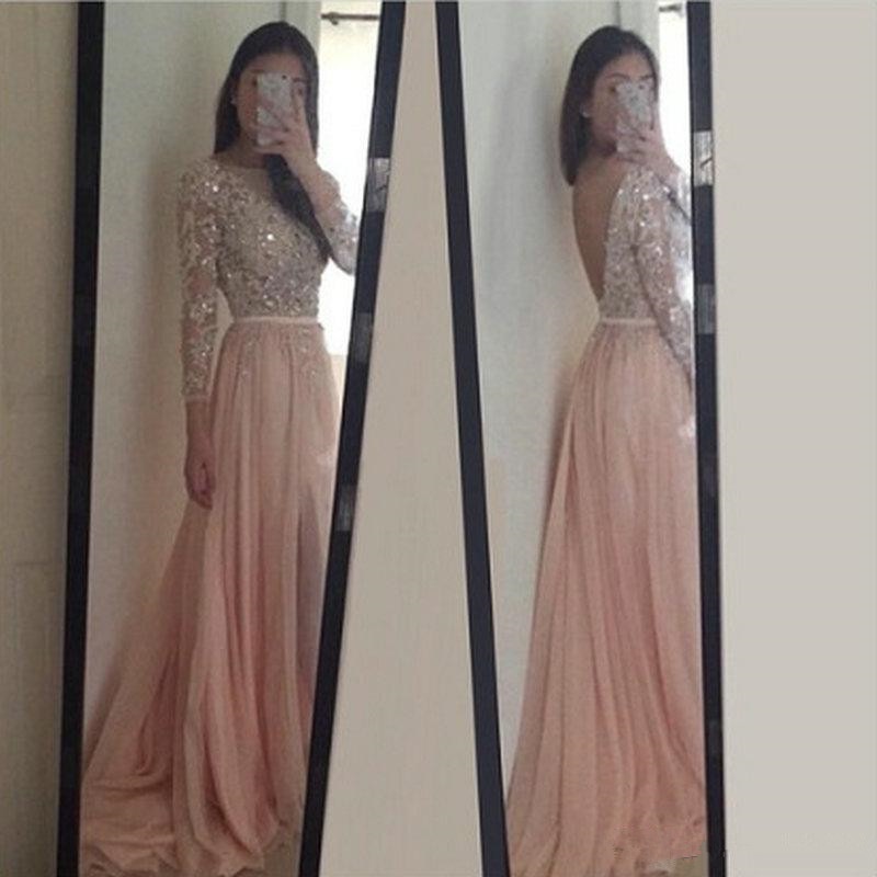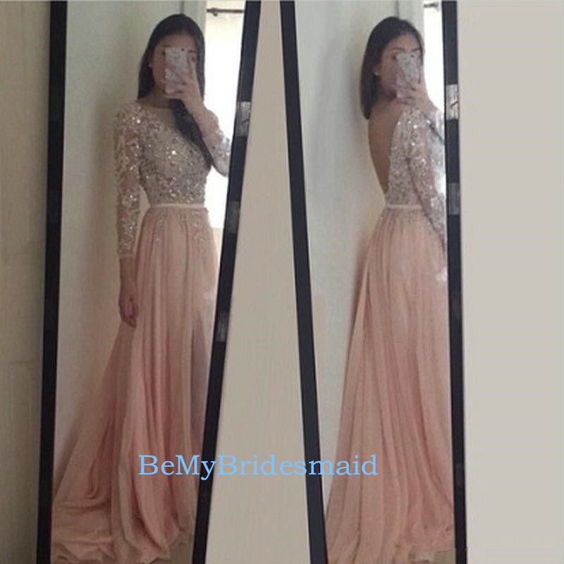 Beautiful Chiffon Pink Handmade Long Backless Prom Dress with Lace Applique, Prom Gowns, Evening Gowns