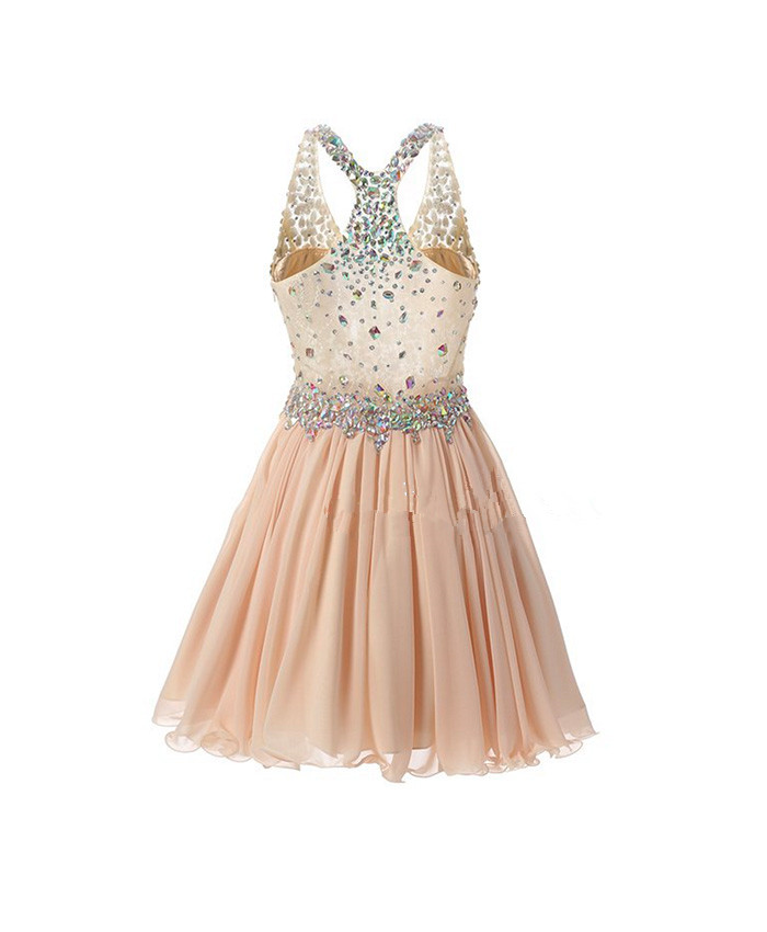 Adorable Chiffon Short Beaded Light Pearl Pink Prom Dresses, Homecoming Dresses, Short Party Dresses