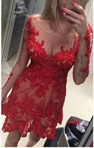 Sexy Red Tulle Mini Lace Applique Evening Dresses, Cocaktail Dresses