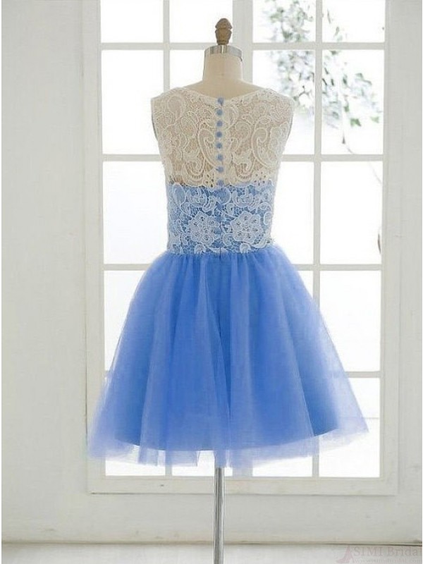 Cute A-line Tulle and Lace Knee-length Homecoming Dress, Lace Prom Dresses, Cute Party Dress