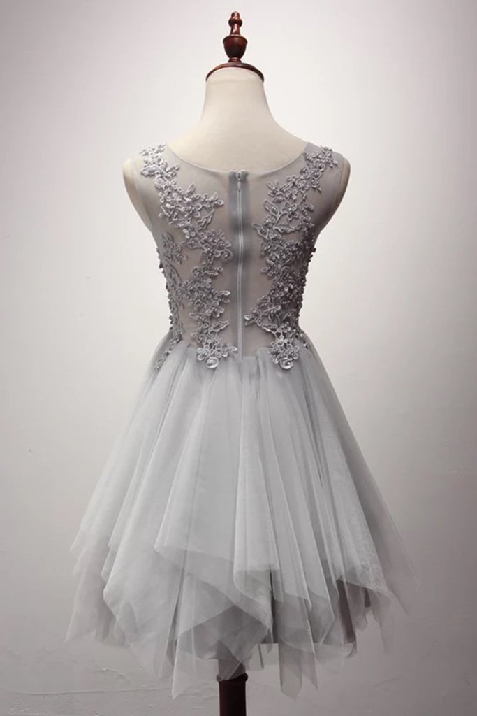 Lovely Custom Made Tulle Grey Short Party Dresses, Tulle Prom Dresse, Grey Prom Dress