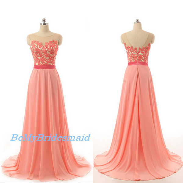 Pretty Chiffon Handmade A-line Long Pink Party Dresses, Pink Prom Dresses, Evening Gowns