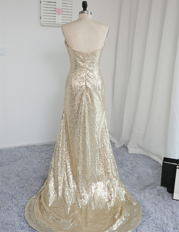 Shiny Sparkle Light Champagne Sequins Slit Prom Dresses, Sequins Party Dresses, Evening Dresses