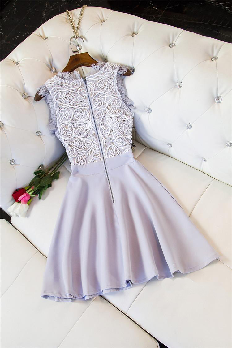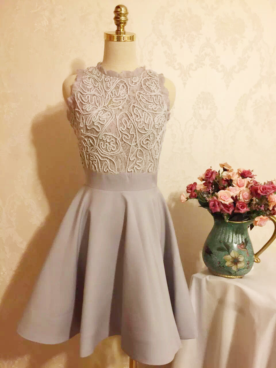 Lovely Lace Grey Short Stylish girl dress,party dress,homecoming dresses, Teen Dresses