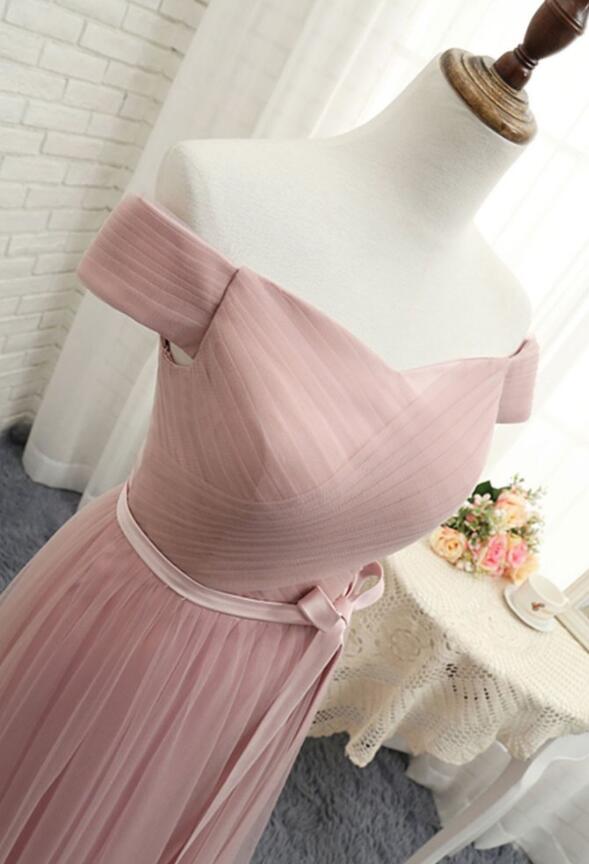 Soft Pink Off Shoulder Tulle Bridesmaid Dresses, Long Bridesmaid Dresses