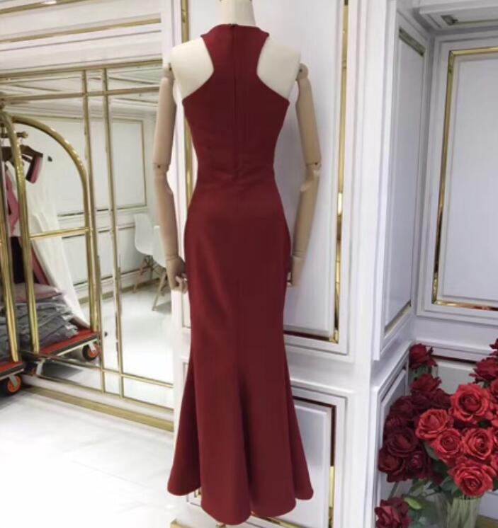 Spandex Halter Mermaid Long Burgundy Party Dresses, Sexy Formal Gowns, Mermaid Prom Dresses