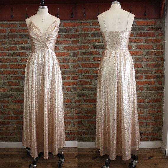 Sequins Bridesmaid Dresses, Straps Prom Dresses, Sexy Party Gowns