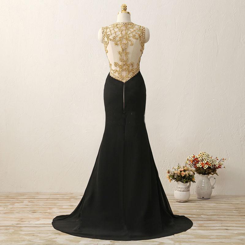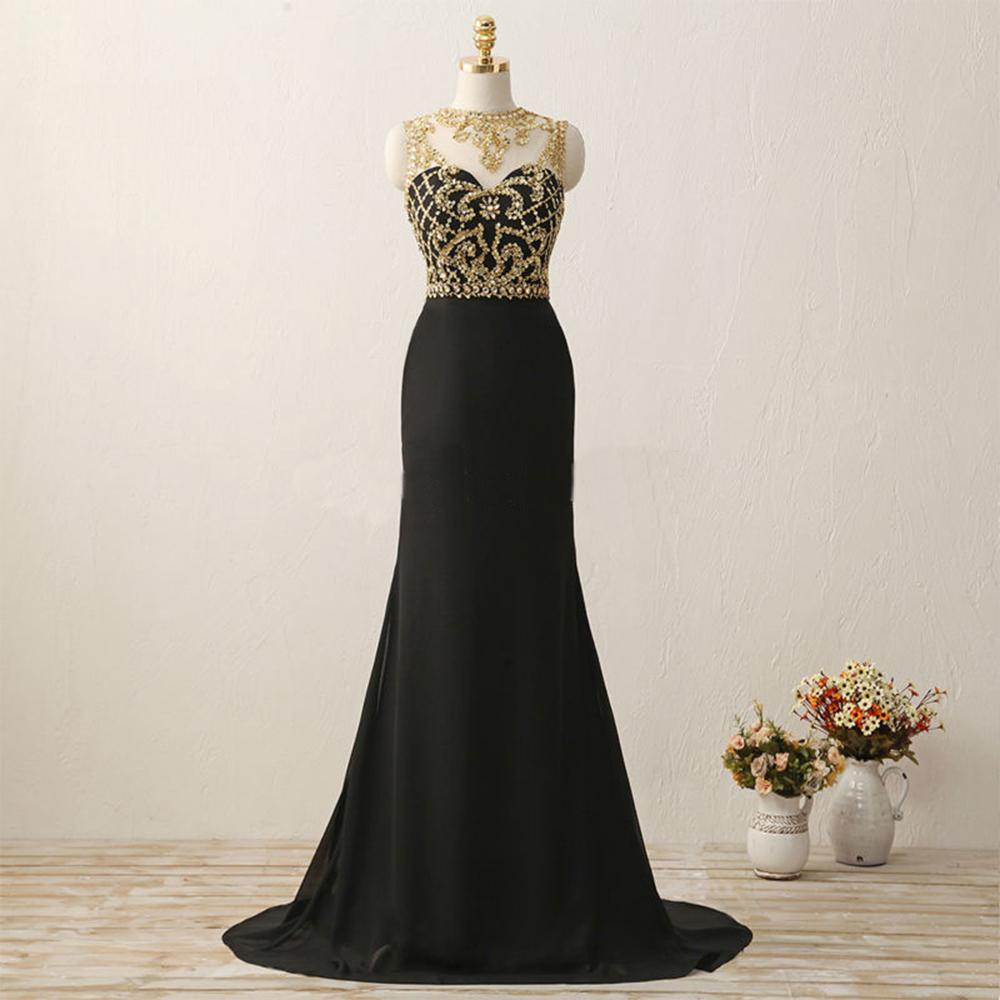 Black Prom Dress with Gold Beaded Classical Prom Dresses, Black Formal Dresses, Evening Gowns 2018