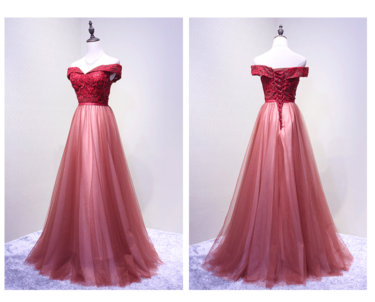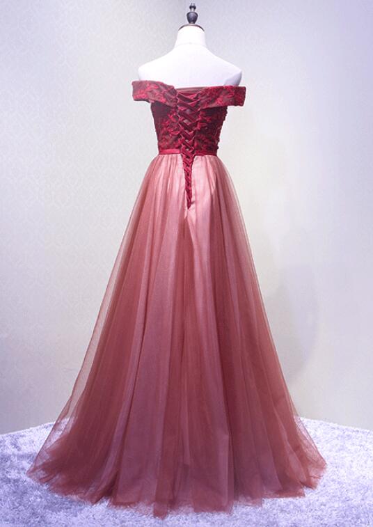 Red Off Shoulder Charming Long Junior Party Dress, Red Prom Dress 2019