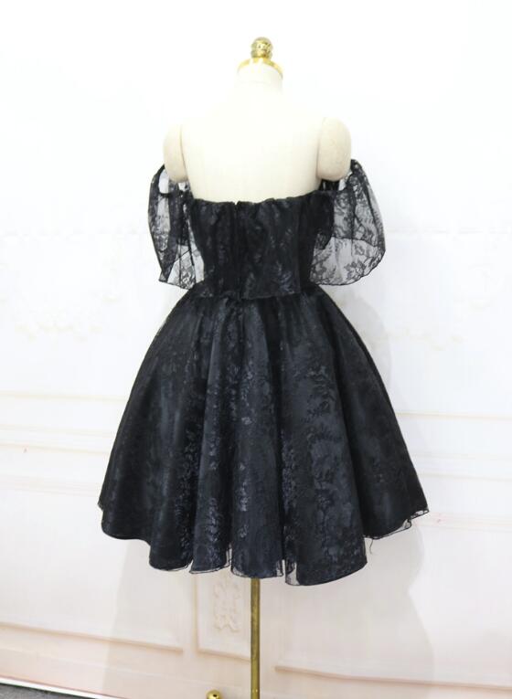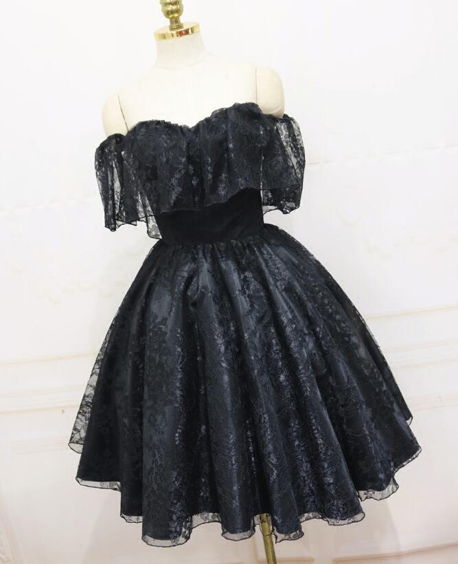 Black Wedding Party Dress, Lace Off Shoulder Formal Dress 2019
