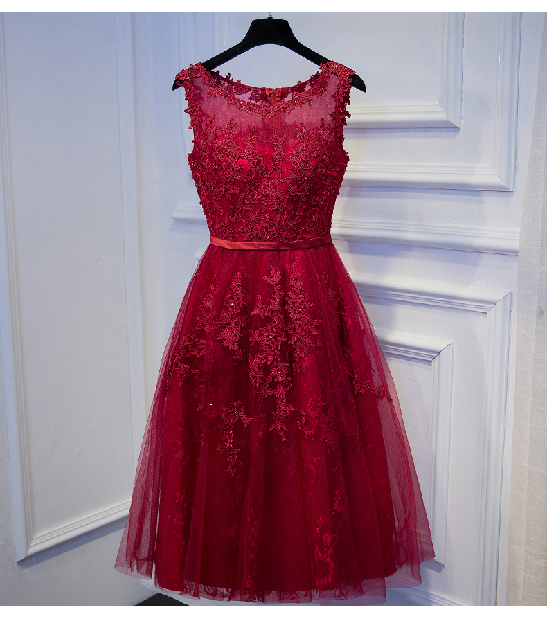 Lovely Wine Red Formal Dress 2019, Round Neckline Party Dress 2019