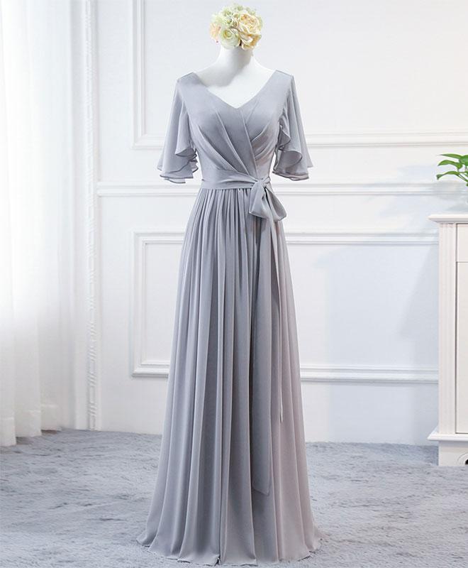 Simple Chiffon Grey Long Bridesmaid Dresses 2019, Party Gowns 2019