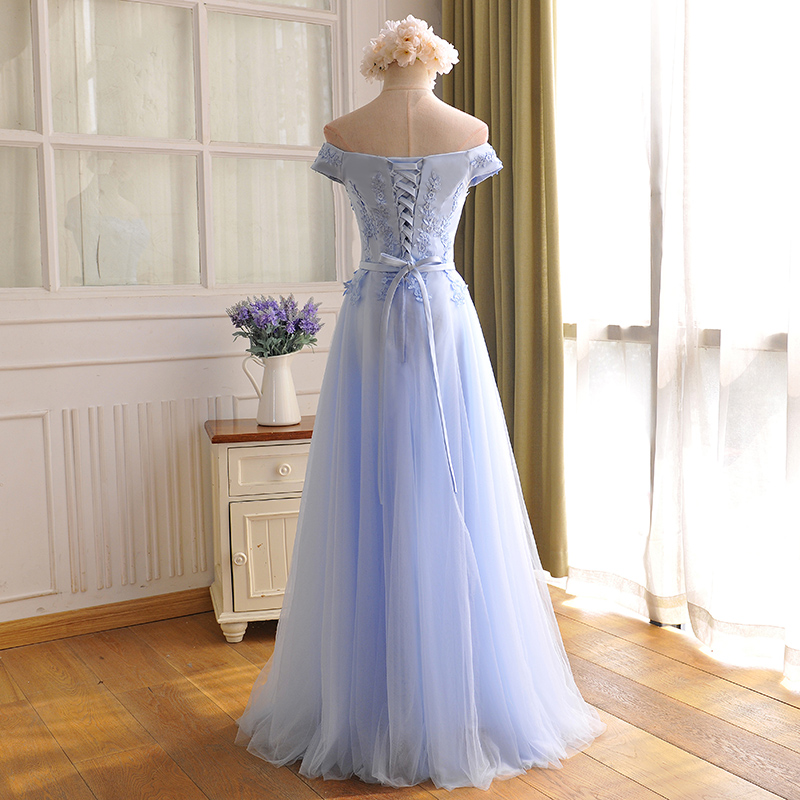 Charming Blue Long Party Dress 2020, Formal Dress with Lace Applique