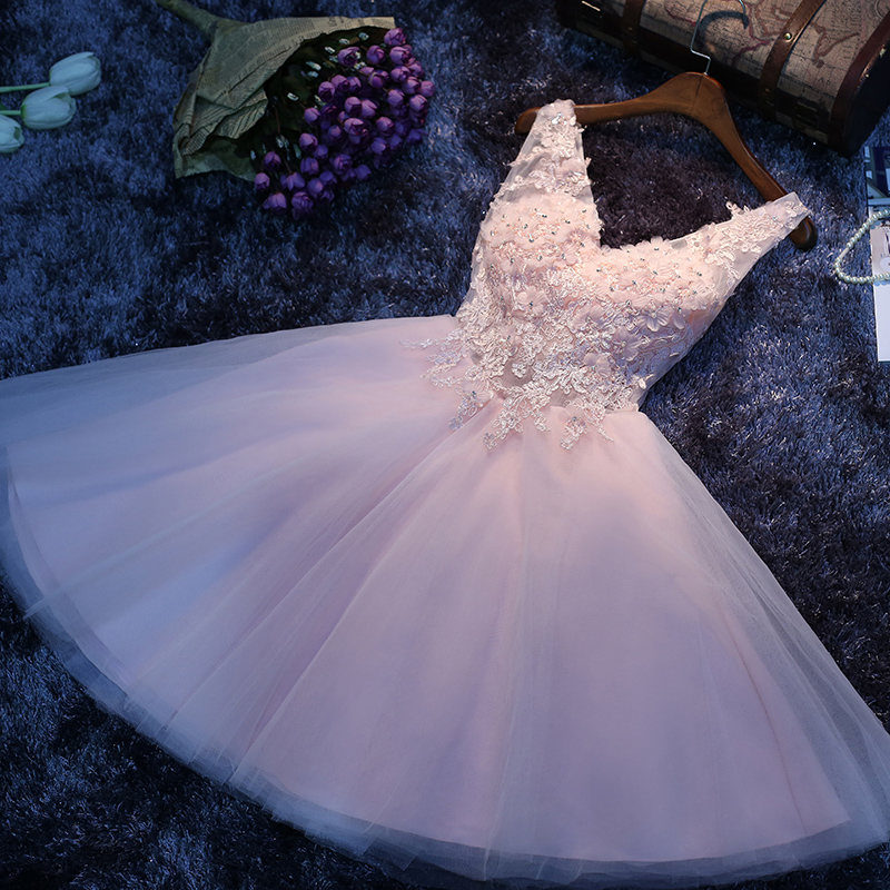 Cute Tulle V-neckline Short Bridesmaid Dress 2020, Tulle Party Dress