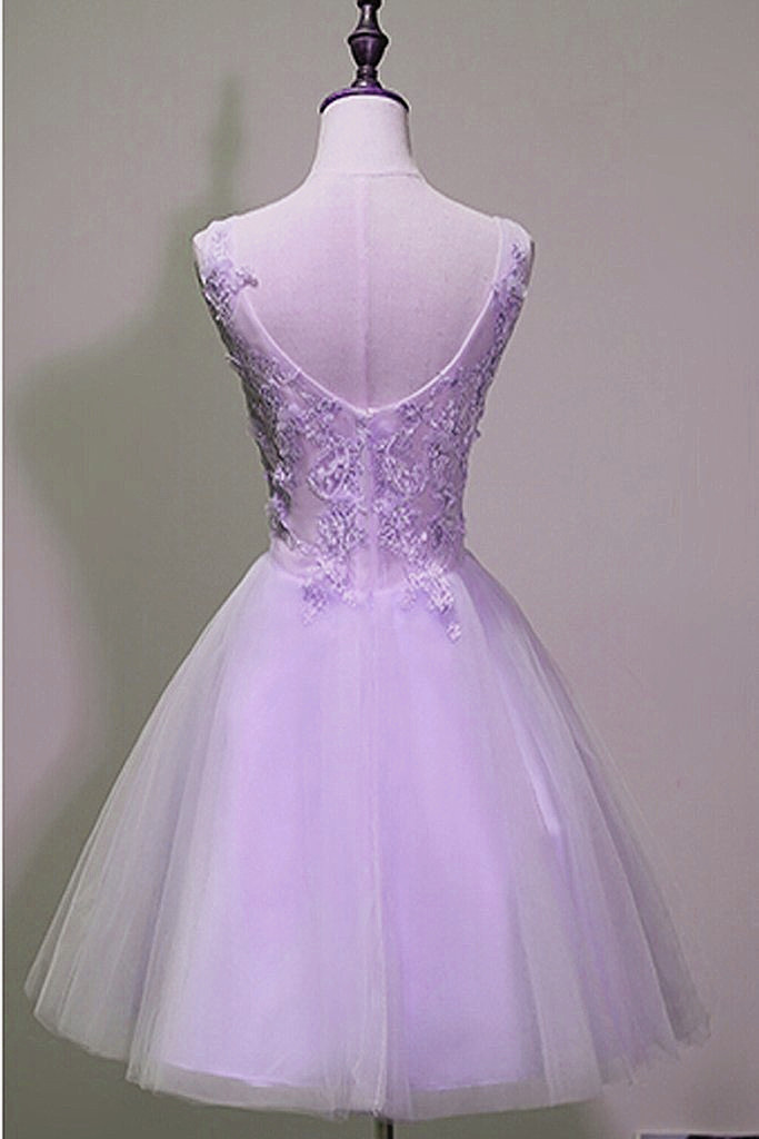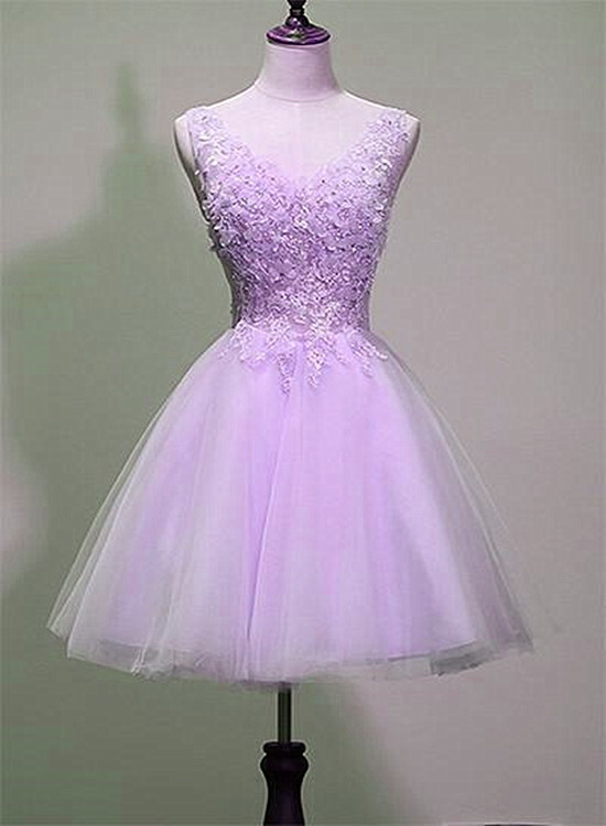 Adorable Lavender Tulle V-neckline Party Dress, Short Prom Dress 2020