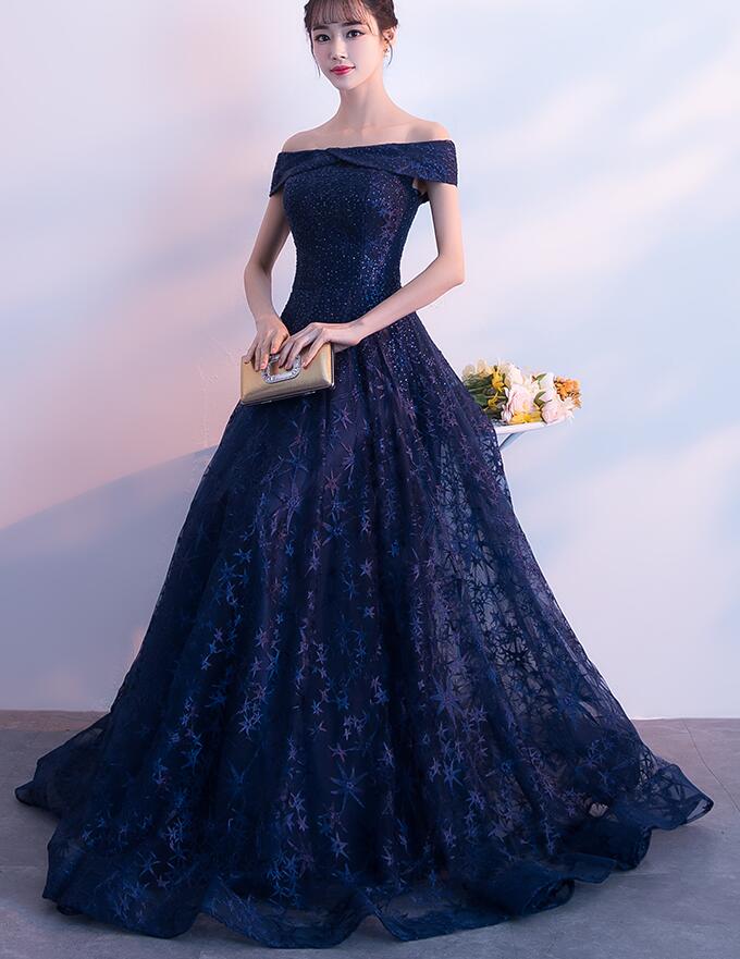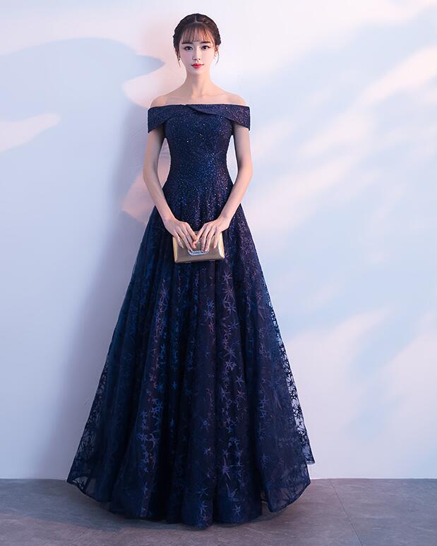 Cute Navy Blue Long Prom Dress, Party Dress 2020