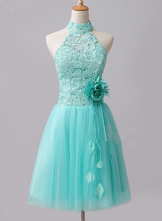 Adorable Mint Flowers and Tulle Short Party Dress, Homecoming Dress